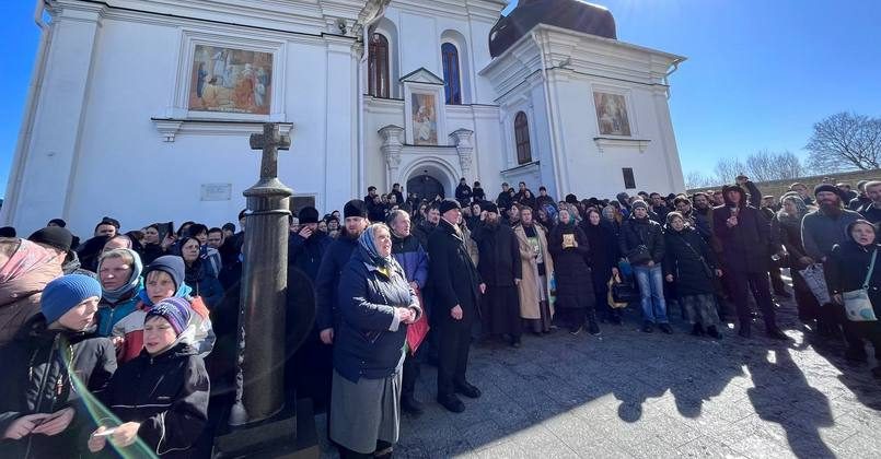 Служба в лавре проходит в обычном режиме, ее проводит митрополит Онуфрий. В Крестовоздвиженском храме на Ближних пещерах много верующих, открыт проход для паломников.