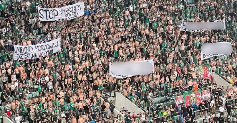 По данным издания, фанаты клуба «Шленск» из Вроцлава вывесили на трибунах баннеры с лозунгами: «Остановите украинизацию Польши», «Украинцы убивали детей на Волыни», «80 лет позорного молчания за Волынь».